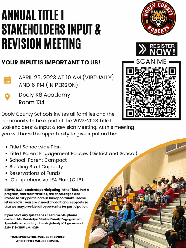 The Department of Federal Programs will be hosting the Annual Title 1 Stakeholders Input and Revision Meeting on the following dates below. Don't miss this informative meeting! There are options to attend virtually and in-person.