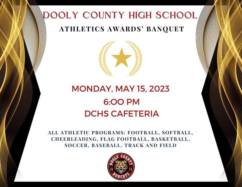 Dooly County High School will have an Athletic Awards’ Banquet on Monday, May 15, 2023 at 6:00 PM in the DCHS Cafeteria. We will be honoring all of our student athletes from this school year.