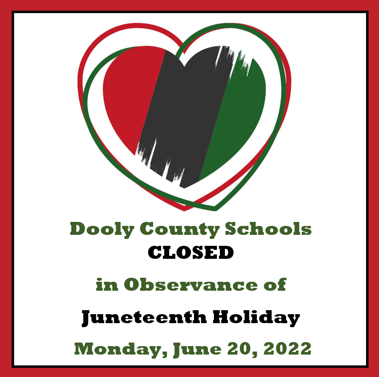 Dooly County Schools closed in observance of Juneteenth Holiday.