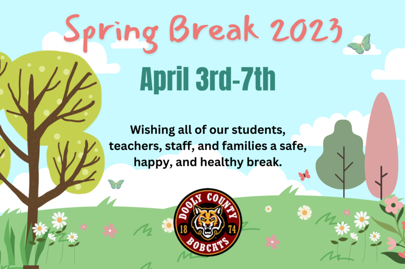 The Dooly County School System will be on spring break next week (April 3rd-7th, 2023). Students are to return to school on Monday, April 10th. Everyone be safe and enjoy!