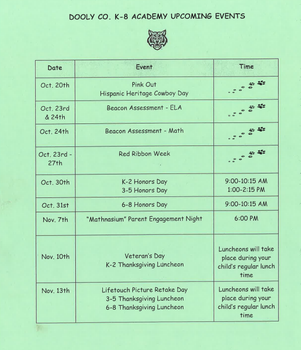 Please see the Upcoming Events for Dooly K-8 Academy!!!#BuildingAFoundationOfExcellence