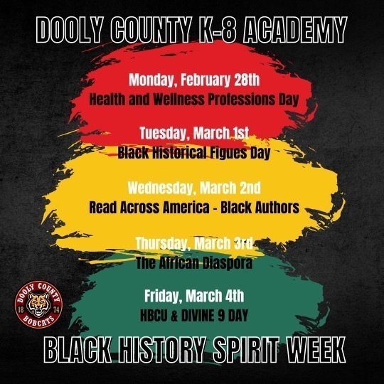 K-8 Black History Spirit Week: Click here for the Spirit Week calendar of events.