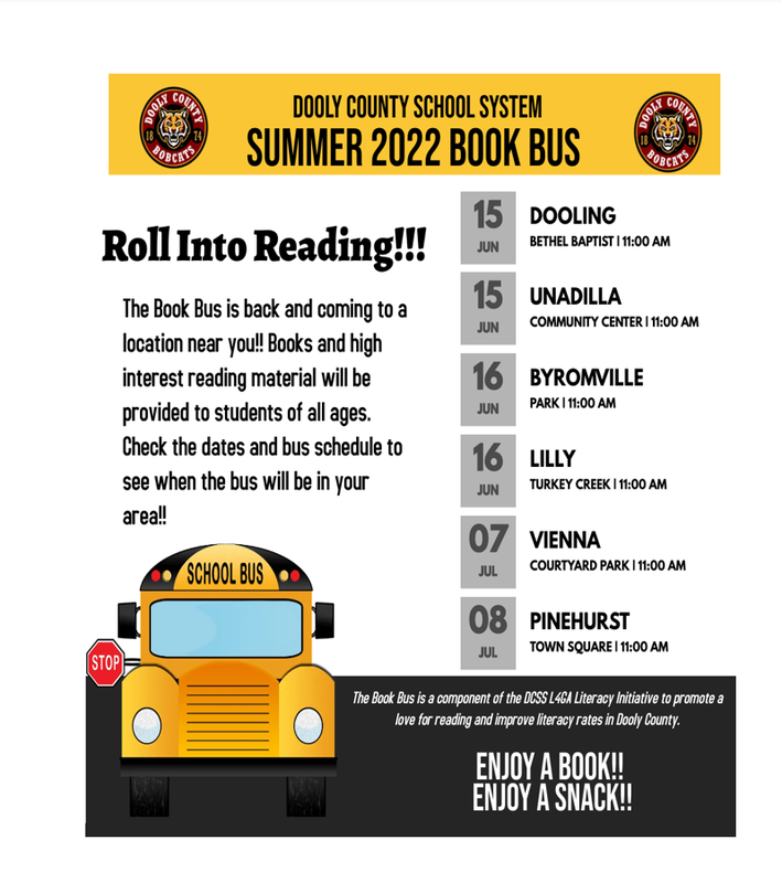 Check out the schedule for the 2022 Summer Book Bus! The Book Bus is back and coming to a location near you. The Book Bus will bring books and high-interest materials to students of all ages in Dooly County.